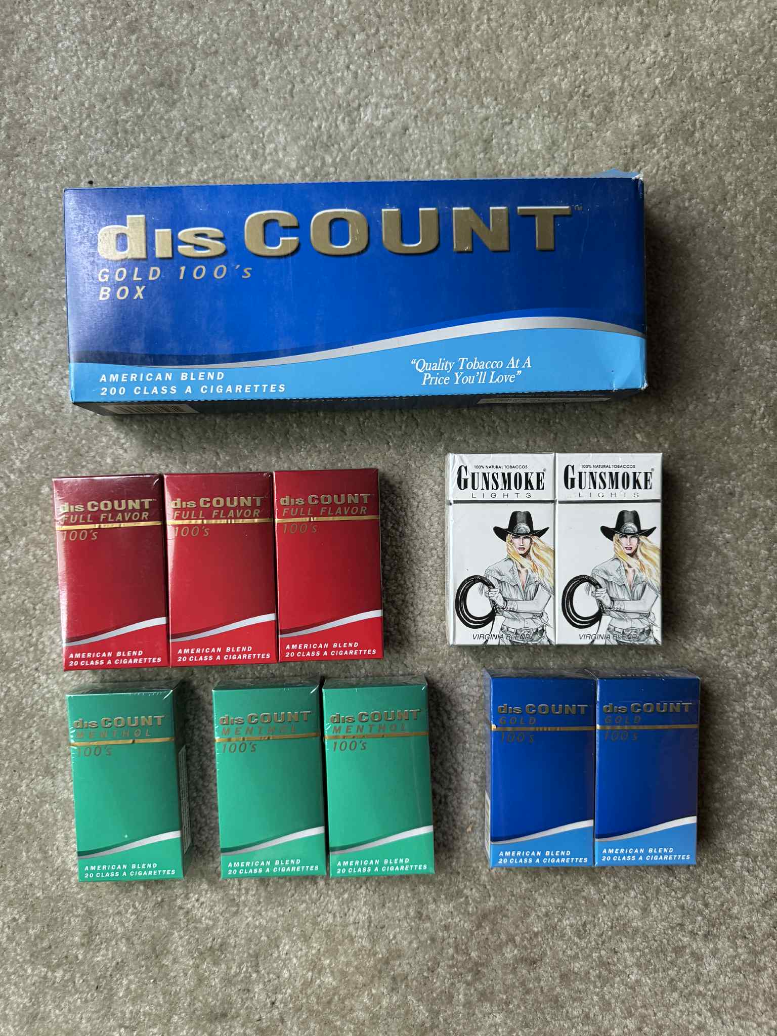 Dis Count Red,Blue,Menthol Green,Menthol & GUNSMOKE Light Hard 100mm